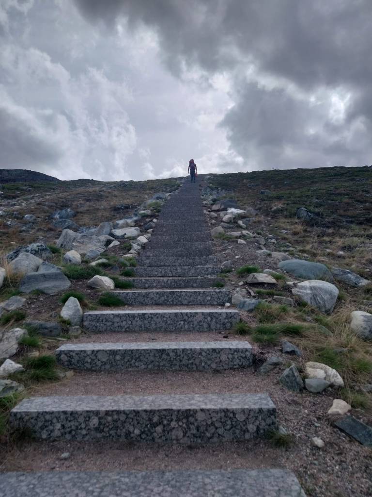 Tuntirikoivikon jälkeen tuli pieni pätkä soratietä jonka päästä alkoi graniittiportaat.