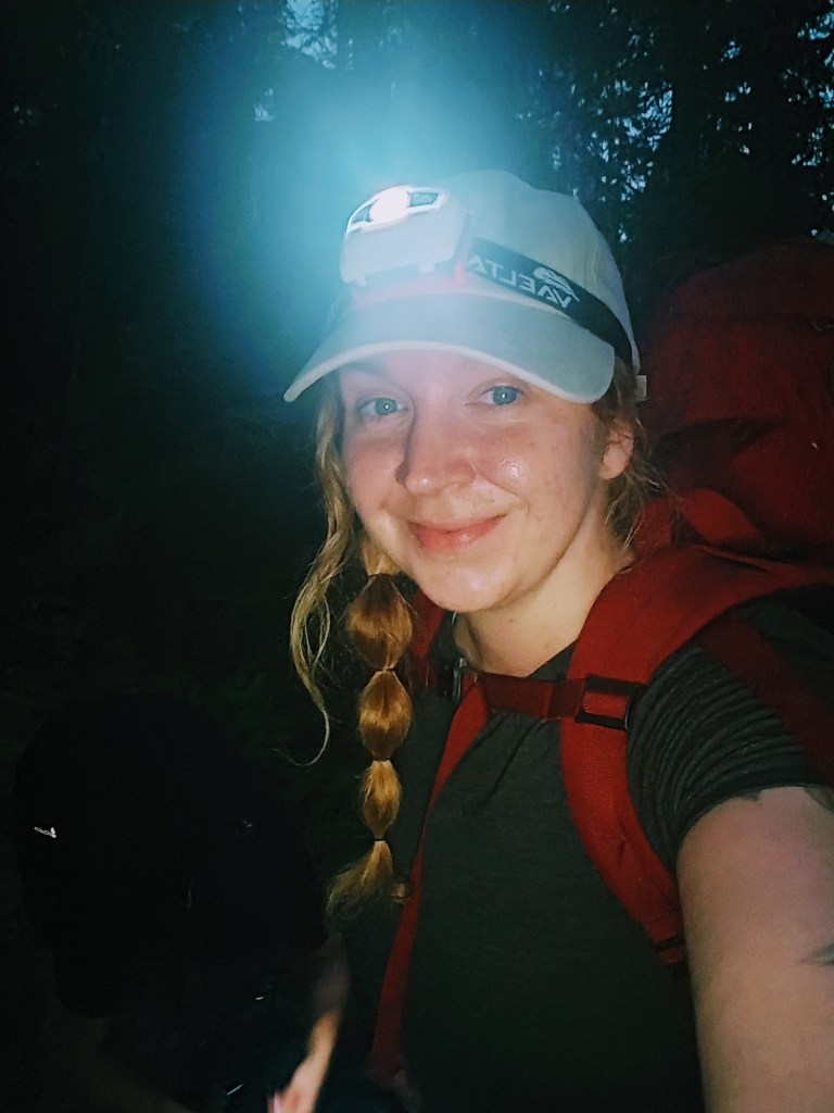 Ensimmäisenä päivänä lähdimme liikkeelle illalla, sillä päivällä lämpötila lähenteli +30 astetta. Olimme perillä vasta myöhään yöllä. On aina hyvä pohtia onko helteellä järkevää vaeltaa, sillä rinkkojen kanssa tarpoessa paahteinen aurinko voi uuvuttaa kovakuntoisenkin kulkijan.